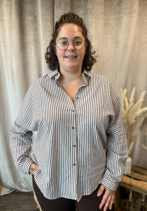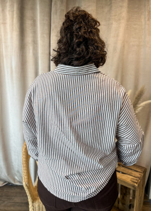 Le motif à rayures fines apporte une touche de modernité et d’élégance, idéale aussi bien pour une tenue de bureau que pour un look décontracté chic. Confectionnée dans une matière douce et respirante, cette chemise assure confort et style tout au long de la journée.