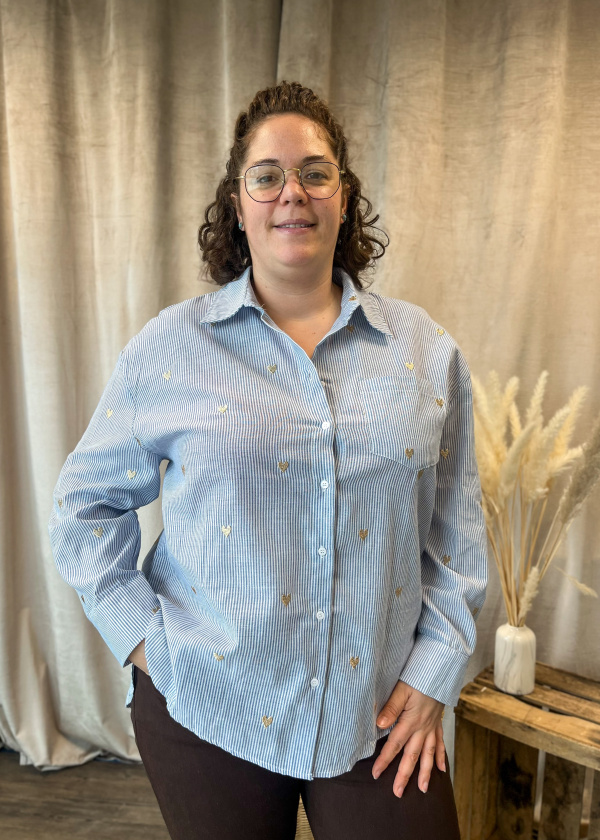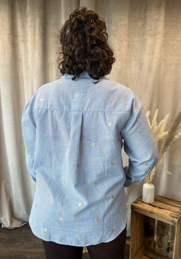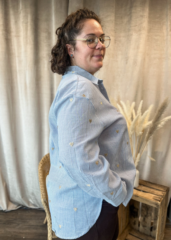 Succombez au charme délicat de cette chemise à rayures fines, rehaussée de petits cœurs brodés sur l’ensemble du tissu. Conçue pour la gamme grande taille, elle associe élégance, confort et féminité au quotidien.