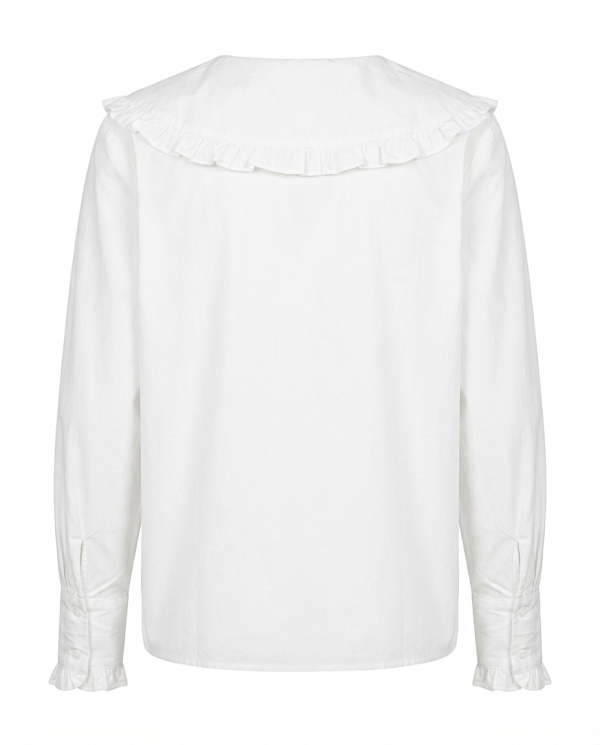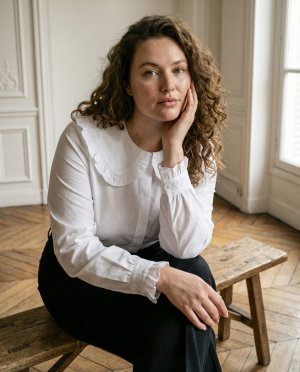 Son col claudine apporte une signature mode forte, inspirée du vestiaire parisien chic. Les volants délicats aux poignets ajoutent une touche féminine et raffinée, sans surcharge. La coupe droite légèrement ample assure une belle aisance et un tombé fluide, idéal pour valoriser les courbes.