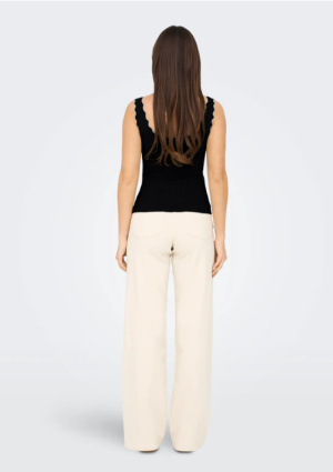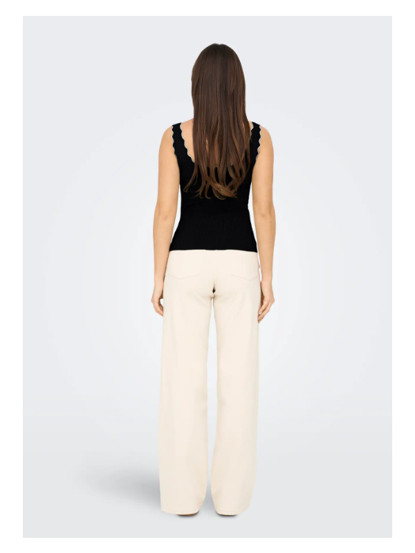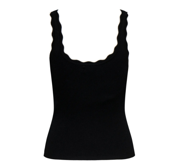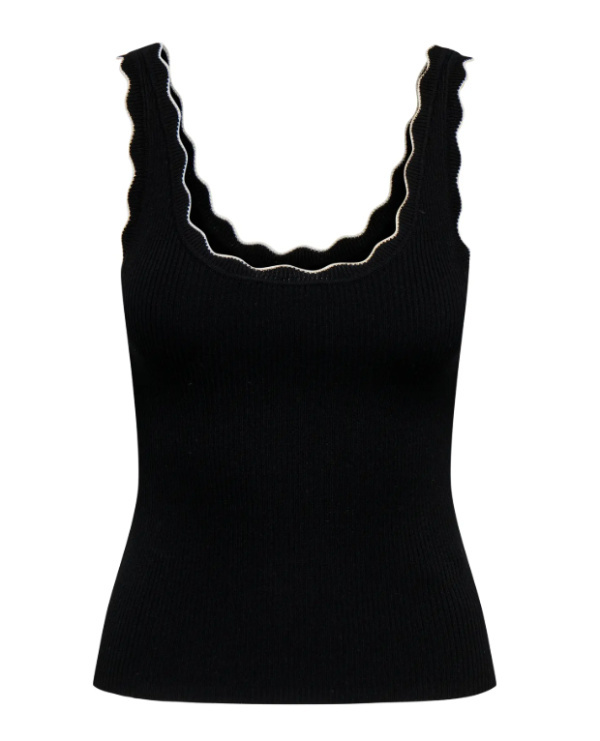 Féminin et ultra facile à porter, ce top débardeur mise sur une coupe près du corps et une maille côtelée douce qui épouse la silhouette. Son encolure carrée légèrement arrondie est soulignée par un fin liseré contrasté, pour une touche graphique chic et moderne.