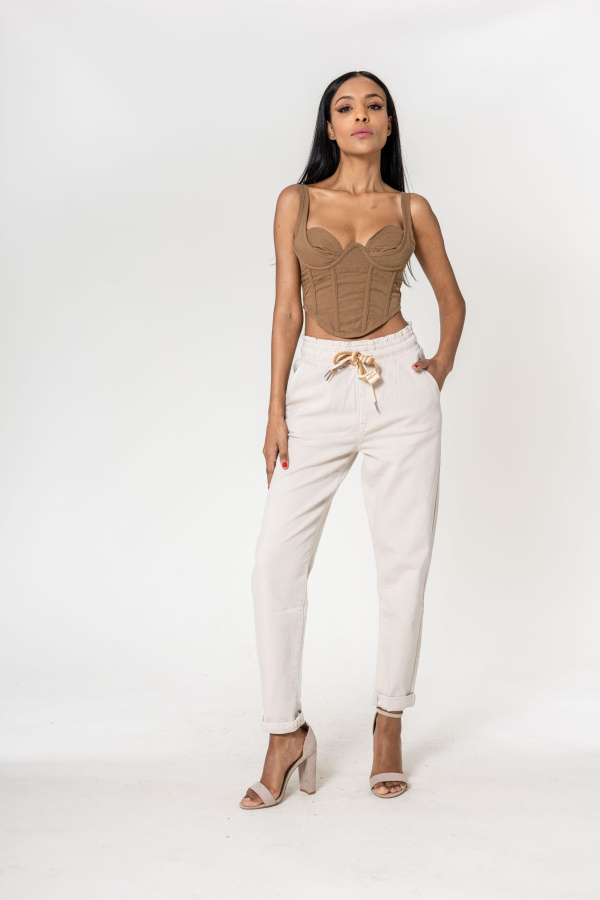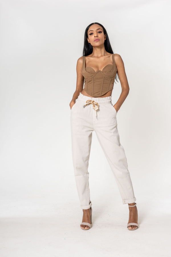Taille : Haute et élastiquée avec cordon