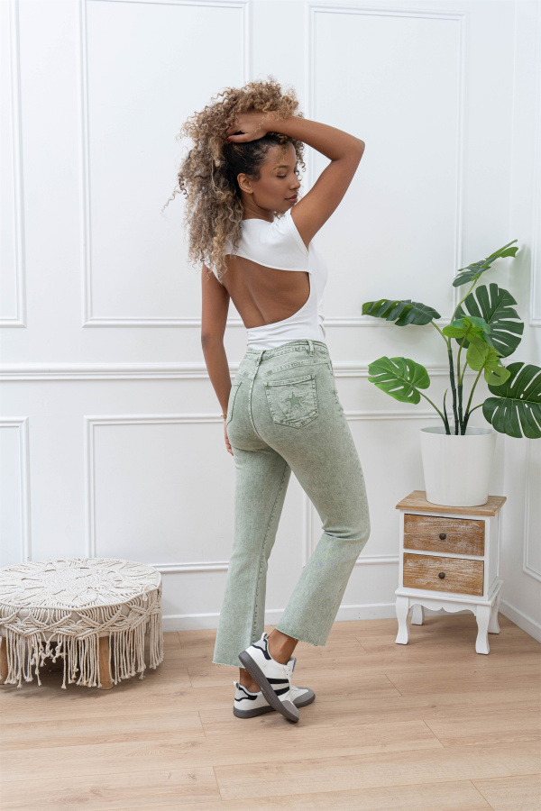 Son détail signature ? Une étoile délicatement cousue sur la poche arrière, ajoutant une note originale et subtilement audacieuse. Confectionné dans un tissu fluide et agréable à porter, ce pantalon s’adapte aussi bien à une tenue élégante qu’à un look plus décontracté.