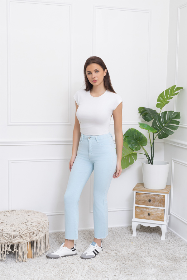 Le pantalon cropped flare est une pièce tendance qui combine deux éléments de style : la coupe flare et une longueur courte. Ce pantalon est ajusté au niveau des hanches et des cuisses, puis s’élargit doucement à partir du genou, créant une forme évasée. Ce qui le distingue particulièrement, c’est sa longueur, qui s’arrête juste au-dessus de la cheville, offrant un effet "cropped" ou raccourci.