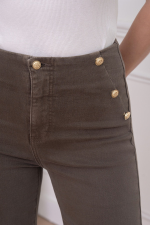 L'élément distinctif de ce pantalon est ses boutons décoratifs sur les poches latérales. Ces boutons ajoutent une touche raffinée et moderne à la pièce. Placés de manière stratégique, ils attirent le regard et apportent un détail chic qui démarque ce pantalon des modèles plus classiques.