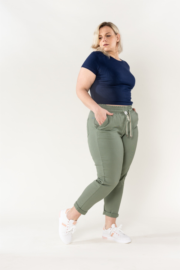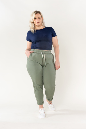 Optez pour le confort et le style avec notre pantalon en toile à taille élastique pour grande taille. Idéal pour toutes les occasions, il deviendra rapidement un incontournable de votre garde-robe !