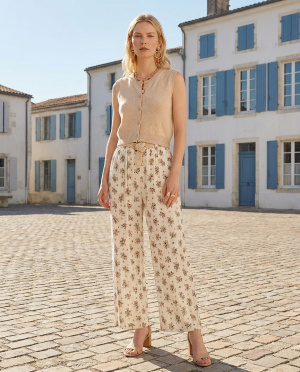 Ce pantalon s’inscrit dans une esthétique bohème chic, idéale pour un vestiaire estival, combinant élégance naturelle et facilité de port.
