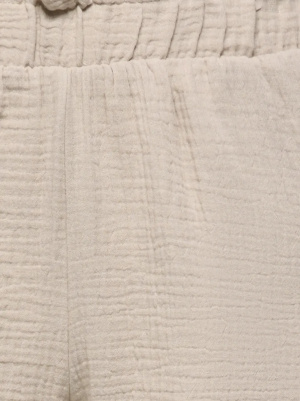 Ce short en gaz de coton allie confort et légèreté, idéal pour les journées estivales. Le tissu en gaz de coton, doux et respirant, offre une sensation agréable sur la peau, vous permettant de rester à l'aise toute la journée. La taille élastiquée assure un ajustement parfait, tout en offrant une grande liberté de mouvement, ce qui le rend particulièrement confortable à porter.