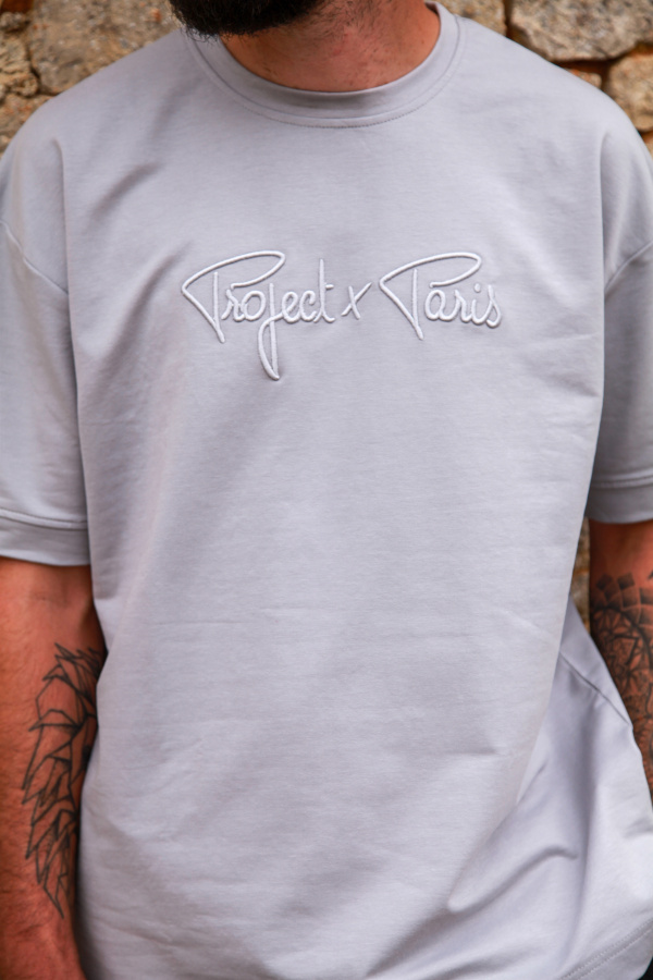 Logo Project X Paris distinctif de la même couleur que le tee shirt brodé sur la poitrine, ajoutant une touche de style unique.