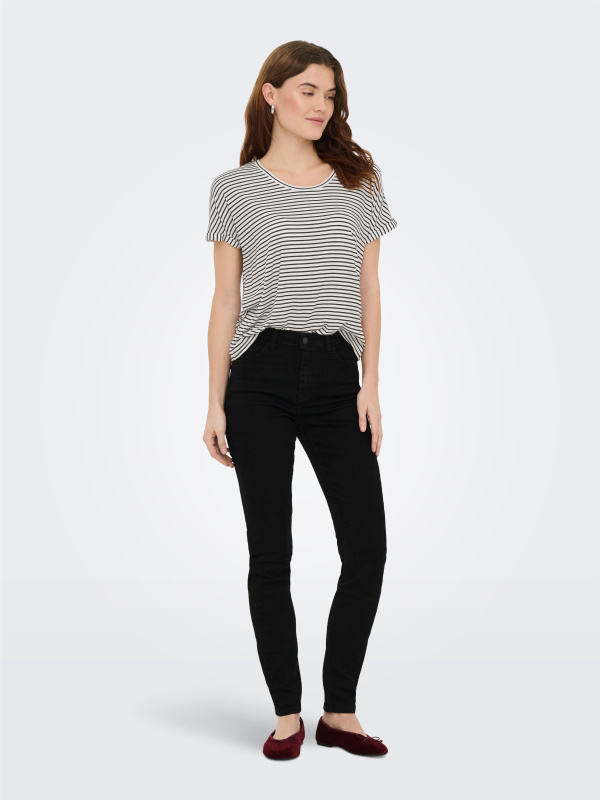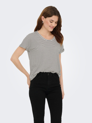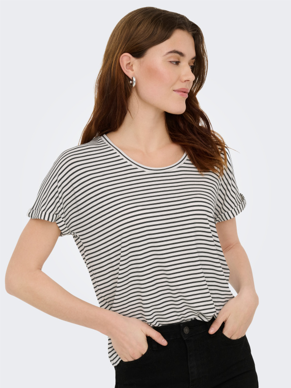 Ce tee-shirt à rayures est un incontournable de la mode casual. Avec ses rayures modernes et dynamiques, il ajoute une touche de fraîcheur à votre look tout en restant intemporel. Sa coupe classique et ses manches courtes en font une pièce idéale pour les journées chaudes ou pour superposer sous une veste. Le col rond, simple et confortable, complète parfaitement l'ensemble. Ce tee-shirt s'associe facilement avec un jean, une jupe ou un short, offrant une grande versatilité pour créer différents styles, du plus décontracté au plus habillé. Un basique chic et confortable à avoir absolument dans sa garde-robe !