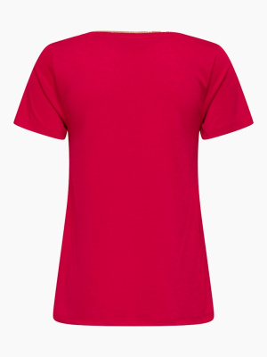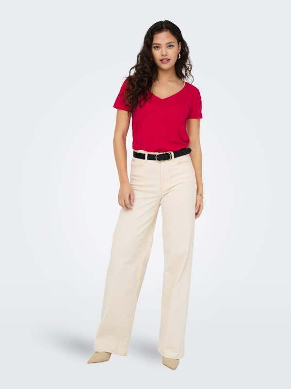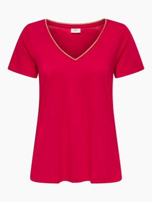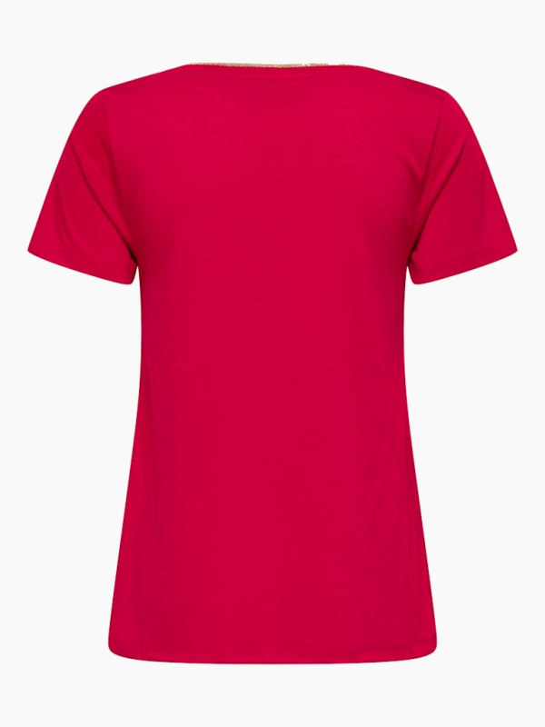 Ce tee-shirt fluide à manches courtes est un choix parfait pour un look à la fois décontracté et chic. Son col V, agrémenté d'un détail pailleté subtil, apporte une touche de brillance et d'élégance, tout en restant léger et moderne. La coupe fluide assure un confort optimal, offrant une grande liberté de mouvement et une silhouette flatteuse. Facile à associer avec vos jeans ou jupes préférés, ce tee-shirt est idéal pour une tenue quotidienne stylée, avec une touche de glamour discrète. Parfait pour celles qui recherchent un vêtement simple mais raffiné.