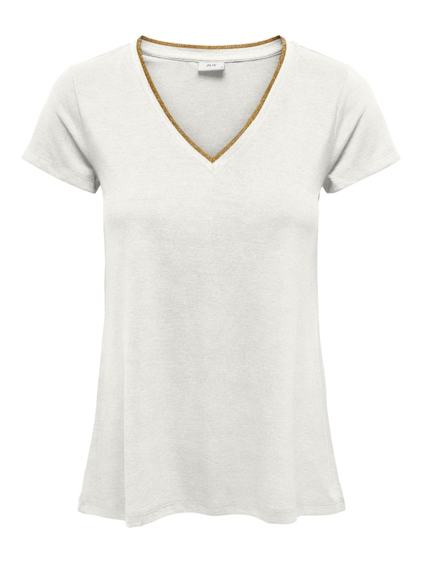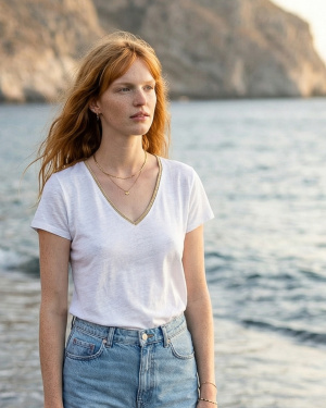 Ce tee-shirt fluide à manches courtes est un choix parfait pour un look à la fois décontracté et chic. Son col V, agrémenté d'un détail pailleté subtil, apporte une touche de brillance et d'élégance, tout en restant léger et moderne. La coupe fluide assure un confort optimal, offrant une grande liberté de mouvement et une silhouette flatteuse. Facile à associer avec vos jeans ou jupes préférés, ce tee-shirt est idéal pour une tenue quotidienne stylée, avec une touche de glamour discrète. Parfait pour celles qui recherchent un vêtement simple mais raffiné.