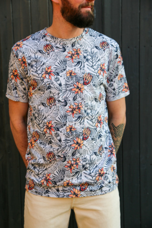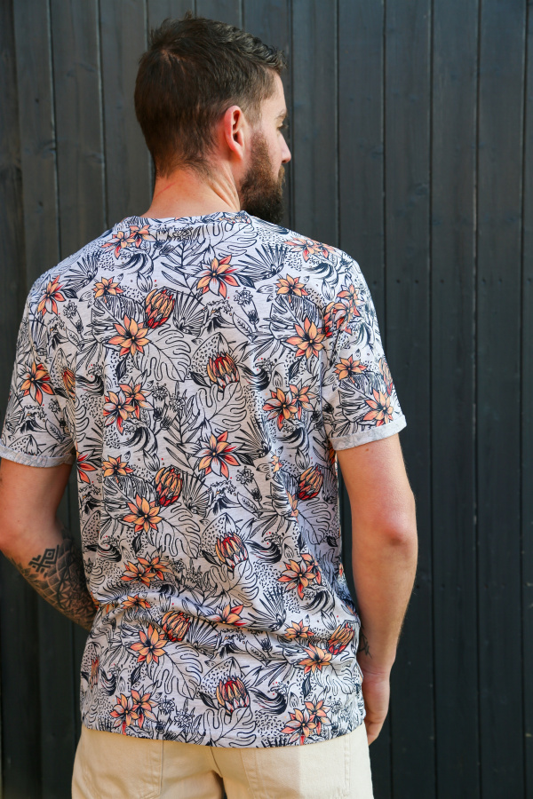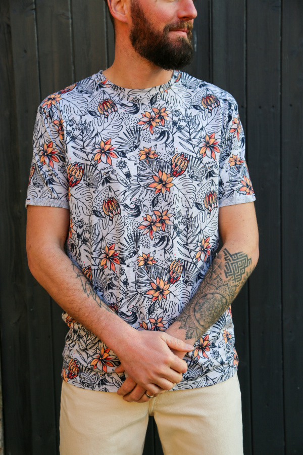 Optez pour un look tendance avec ce t-shirt homme à imprimé all over. Son col rond classique et sa coupe confortable en font un incontournable du dressing. Idéal pour apporter une touche de style à vos tenues décontractées ! 🔥