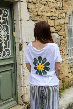 Adoptez un style décontracté avec ce tee-shirt oversize à l’esprit pop et joyeux. Confectionné dans une coupe ample ultra-confortable, il se démarque par une impression de pâquerette façon emoji à l’avant et au dos, pour un look fun et plein de fraîcheur.
