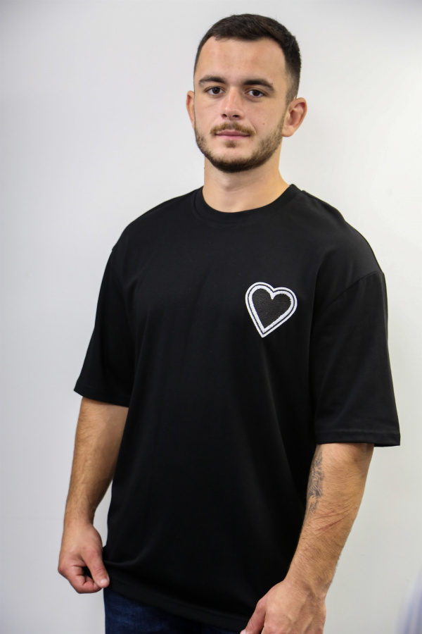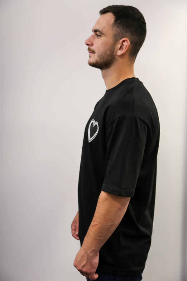 Discret et stylé, un cœur brodé sur la poitrine apporte une touche de douceur et d’originalité, tout en restant facile à associer au quotidien.