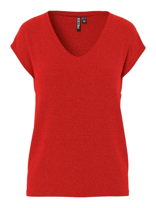 T-shirt à fines rayures dorées, idéal pour apporter une touche lumineuse et tendance à vos tenues.