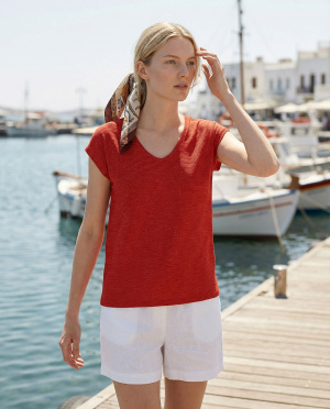 Facile à associer, ce t-shirt se porte aussi bien avec un jean qu’avec un pantalon plus habillé.