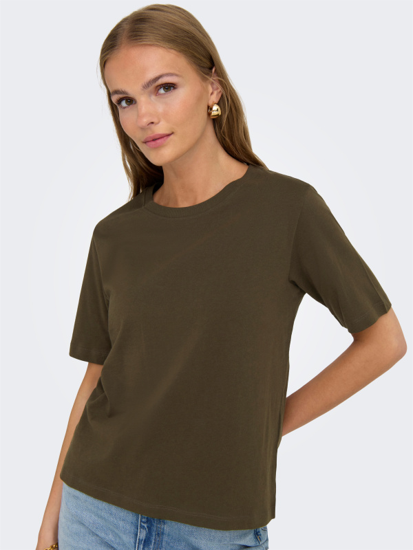 Doté d’un col rond classique et de manches courtes, il offre une ligne épurée et facile à associer. Sa matière douce assure un tombé net et confortable au quotidien.