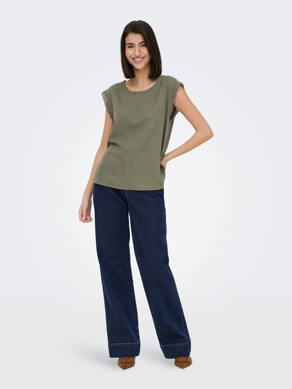 Sa coupe fluide assure un tombé naturel, tandis que les manches délicatement ornées de dentelle apportent la touche féminine qui change tout.