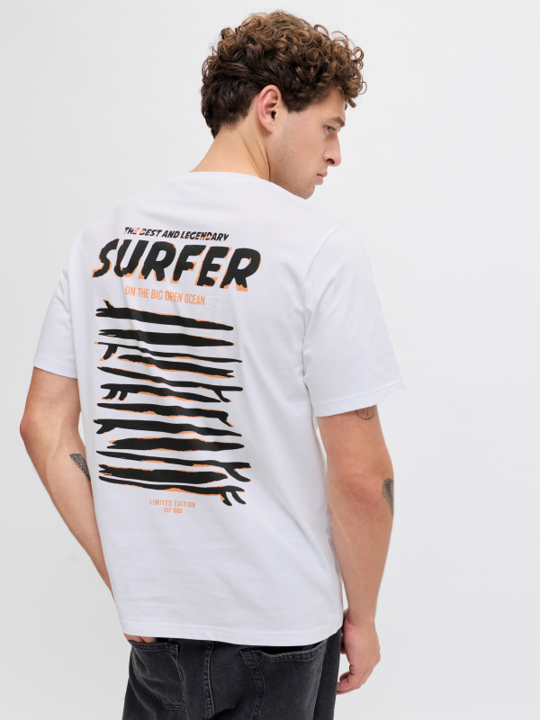 T-shirt à l’esprit surf et décontracté, parfait pour les journées ensoleillées. Son imprimé graphique au dos apporte une touche originale et estivale à un basique facile à porter.