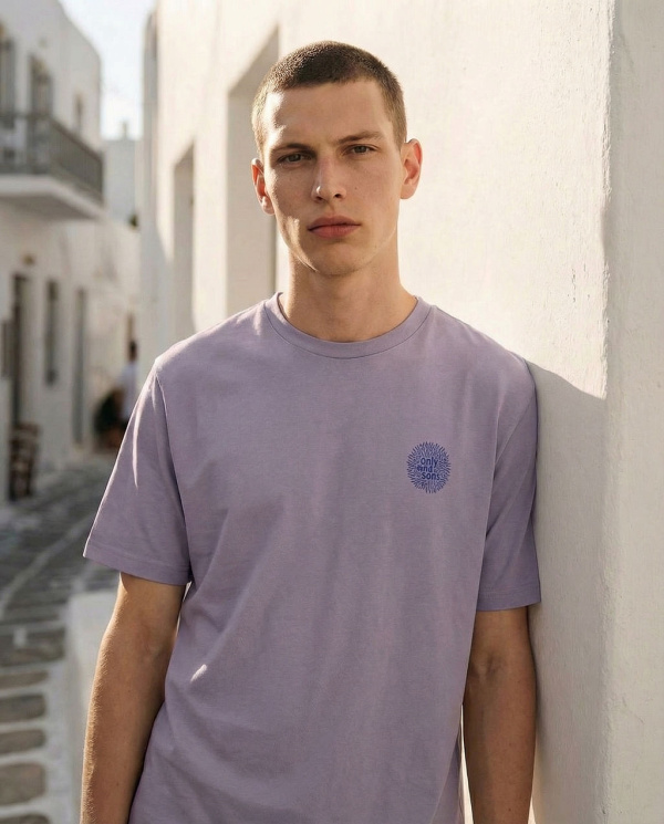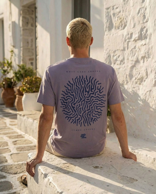 Plusieurs coloris avec logo discret sur la poitrine et imprimé graphique au dos.