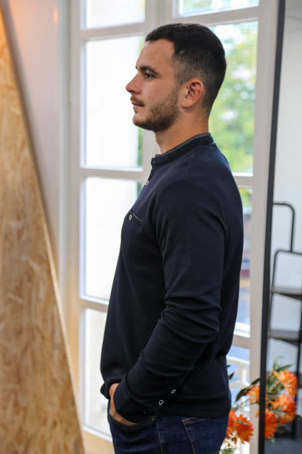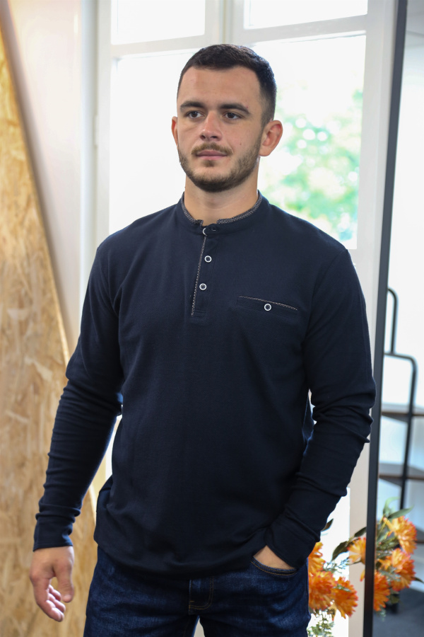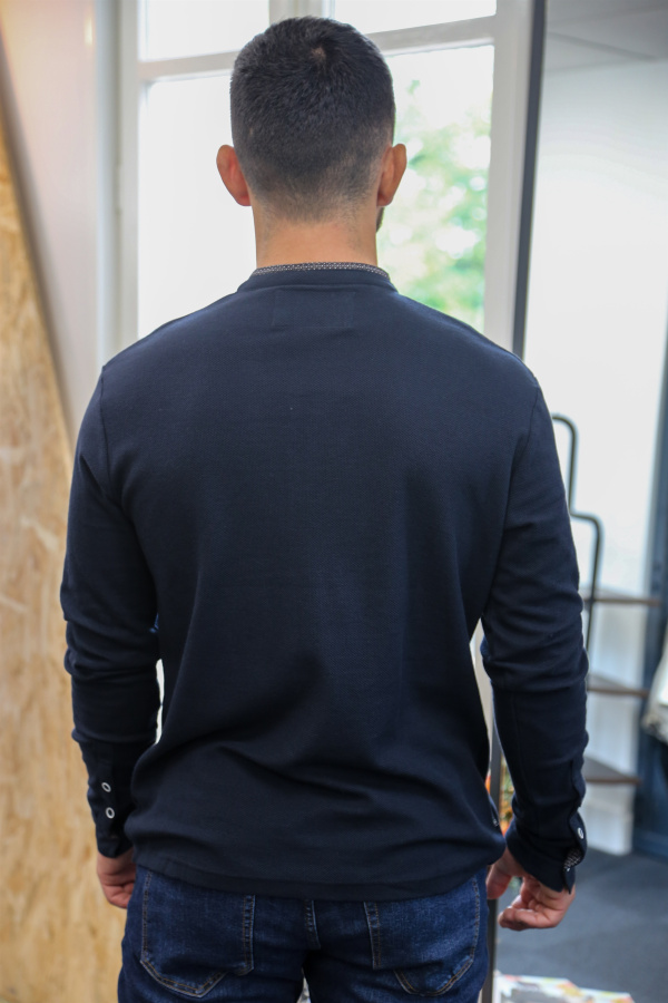 Ce polo homme à manches longues allie confort et détails soignés pour un look à la fois casual et raffiné. Confectionné dans une maille texturée type abeille, il offre un relief discret mais élégant, parfait pour la saison.