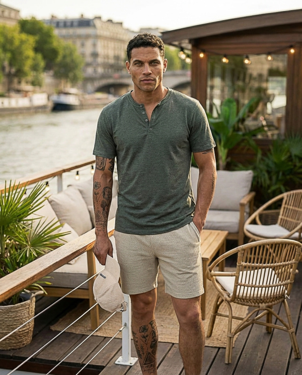 Doté de poches latérales pratiques et de finitions épurées, il s’intègre facilement dans un vestiaire estival contemporain.