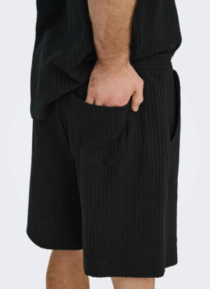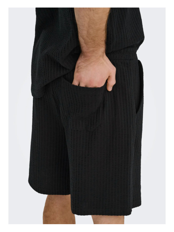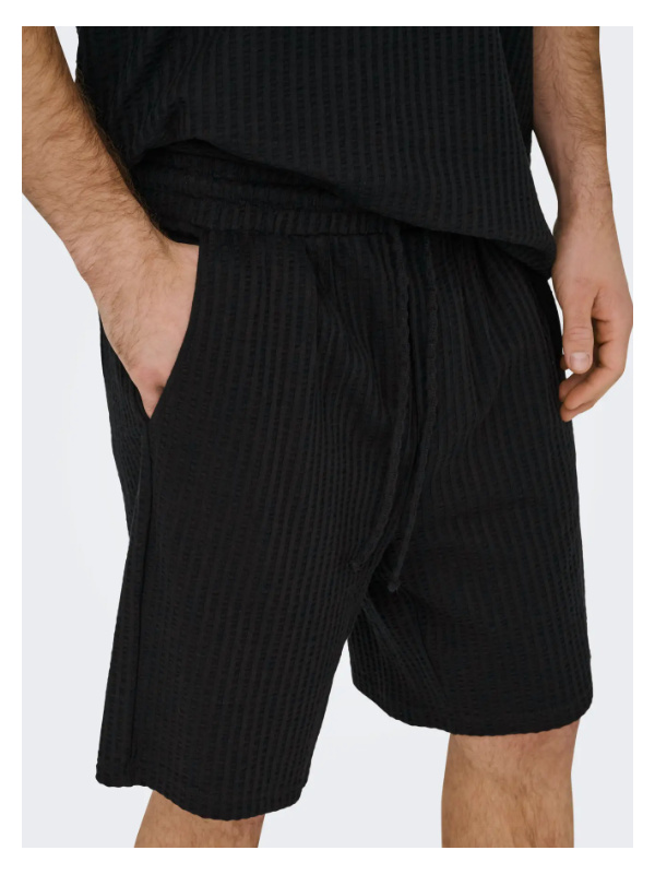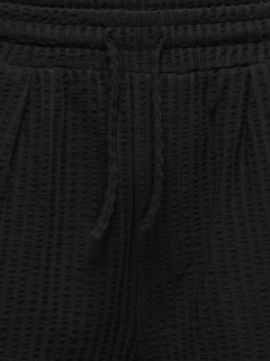 Sa matière texturée et sa taille élastiquée avec cordon offrent un maximum de confort tout en apportant une touche moderne et estivale à votre look.
