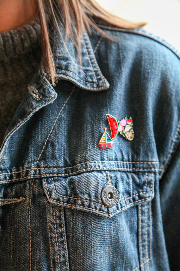 Pins décoratif à motif aléatoire, idéal pour personnaliser vos vêtements, sacs ou accessoires.