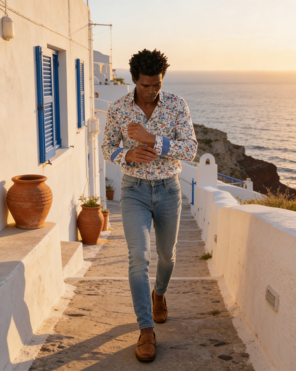 Chemise à imprimé floral vibrant, parfaite pour dynamiser vos looks.
