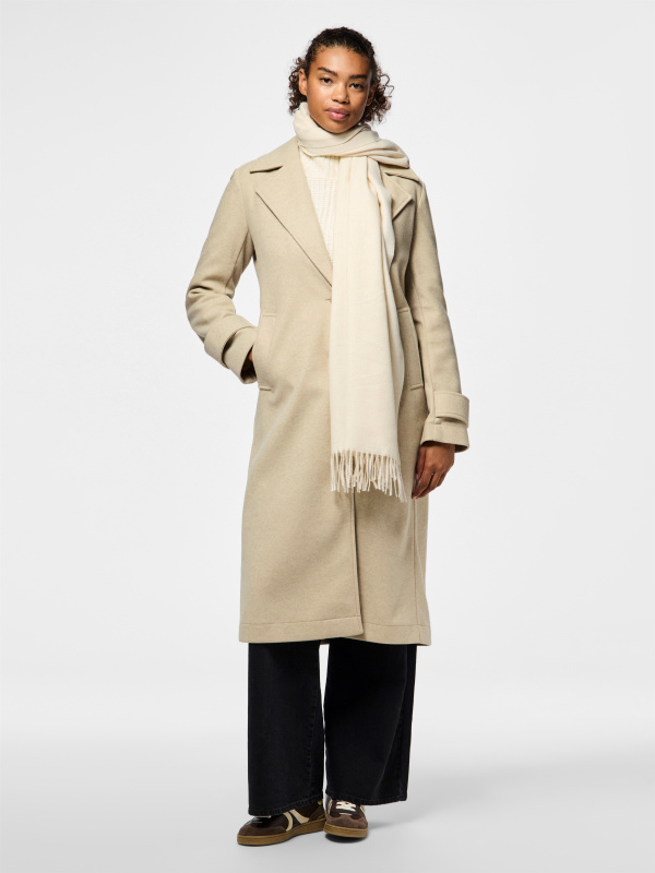 Cette écharpe à franges de la marque Pieces est non seulement élégante, mais aussi éco-responsable, étant fabriquée en polyester recyclé. Ce choix de matériau contribue à réduire l'impact environnemental tout en offrant une douceur et un confort exceptionnels.
