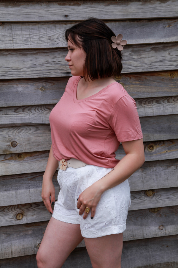 Design : Encolure V classique et manches courtes pour une allure intemporelle et facile à porter.