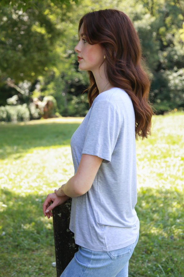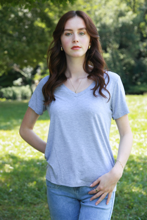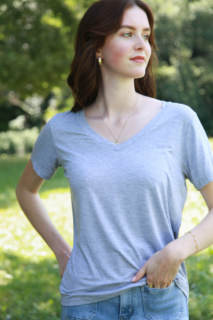 Design : Encolure V classique et manches courtes pour une allure intemporelle et facile à porter.