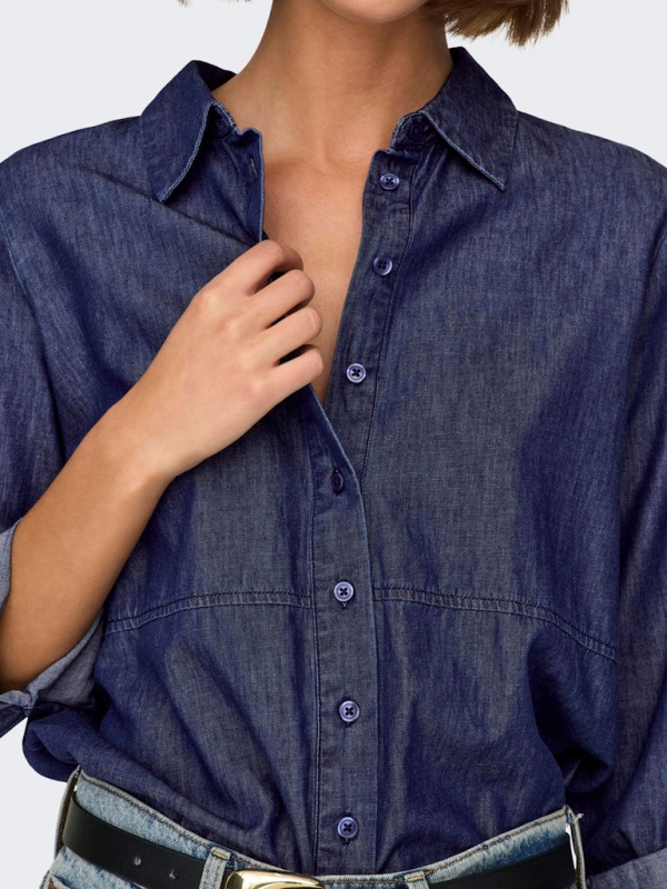 Adoptez un look casual chic avec cette chemise à l'aspect jean, parfaite pour ajouter une touche décontractée et stylée à votre tenue. Confectionnée dans un tissu léger qui imite le denim, cette chemise offre tout le charme du jean sans la rigidité, assurant un confort optimal tout au long de la journée. Les manches à revers ajoutent une touche moderne et versatile, permettant de porter les manches retroussées pour un look plus décontracté ou allongées pour une allure classique. Dotée d’une coupe légèrement ample, elle se prête à diverses associations, que ce soit avec un pantalon, une jupe, ou même par-dessus une robe pour un effet superposé tendance. Facile à porter et à styliser, cette chemise aspect jean est un incontournable pour une garde-robe moderne et pratique.