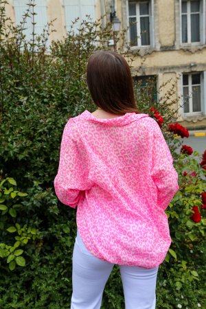 Ajoutez une touche audacieuse à votre garde-robe avec cette blouse légère à motif léopard coloré. Son design moderne, avec des couleurs vibrantes, transforme le classique motif léopard en une version fraîche et dynamique. Le col chemise lui confère une allure élégante et raffinée, tout en restant décontractée.