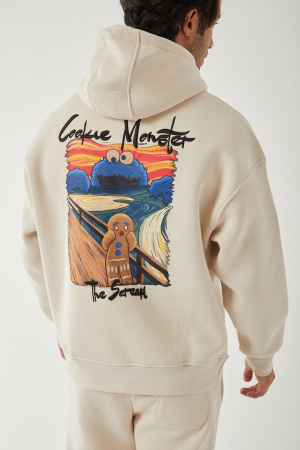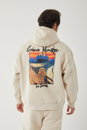 Sweat à capuche pour homme avec une impression audacieuse de Cookie Monster au dos, parfait pour ajouter une touche amusante à votre garde-robe. Fabriqué en mélange de coton doux et respirant et de polyester, il offre un confort optimal tout au long de la journée. Le design comporte une capuche ajustable avec des cordons, une poche kangourou à l'avant, ainsi que des poignets et un ourlet côtelés pour un ajustement parfait.