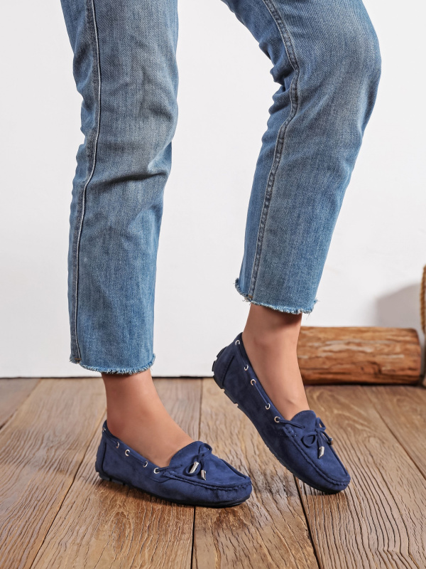 Confectionnés dans un cuir suédé souple, ils offrent un toucher doux et un confort immédiat. Le bout légèrement arrondi et les surpiqûres apparentes soulignent un savoir-faire soigné, tandis que le lacet décoratif avec finitions métalliques apporte une note subtilement chic. La semelle plate assure une démarche stable et agréable, idéale pour accompagner la journée sans compromis.
