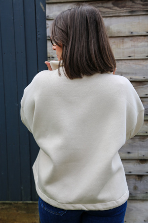 Adopte le confort absolu avec cette veste oversize molletonnée, pensée pour allier chaleur et style. Son intérieur tout doux t’enveloppe dans un cocon de bien-être, parfait pour les journées fraîches.