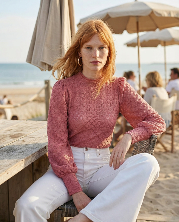 Le top à manches longues en dentelle avec col haut est une pièce élégante qui allie détails raffinés et sophistication. Sa confection en dentelle et son col haut en font un choix parfait pour des occasions spéciales et des événements formels. Avec sa coupe classique et ses finitions délicates, ce top est un ajout chic et polyvalent à toute garde-robe.Pour une occasion spéciale, il peut être combiné avec une jupe crayon et des escarpins. Pour une sortie plus casual, il peut être porté avec un pantalon ajusté ou un jean et des bottines élégantes. Ce top est également parfait pour les occasions où une touche de sophistication et de romantisme est souhaitée.