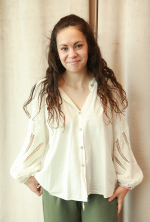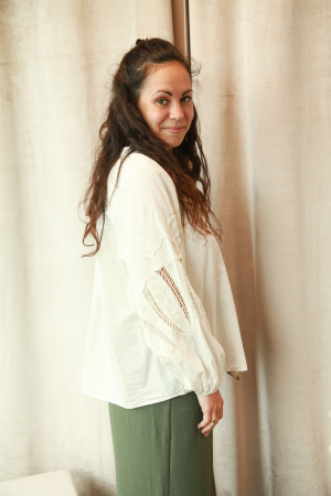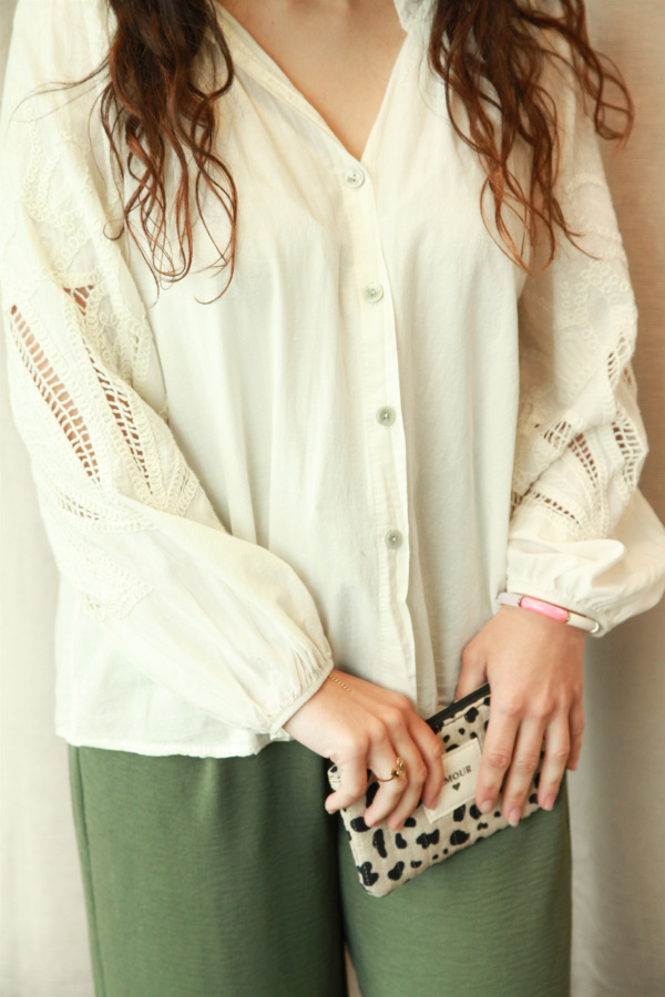 Apportez une touche de romantisme et d'élégance à votre garde-robe avec notre chemise à manches bouffantes ajourées. Conçue pour celles qui aiment allier sophistication et modernité, cette chemise se distingue par ses détails raffinés et sa silhouette féminine.