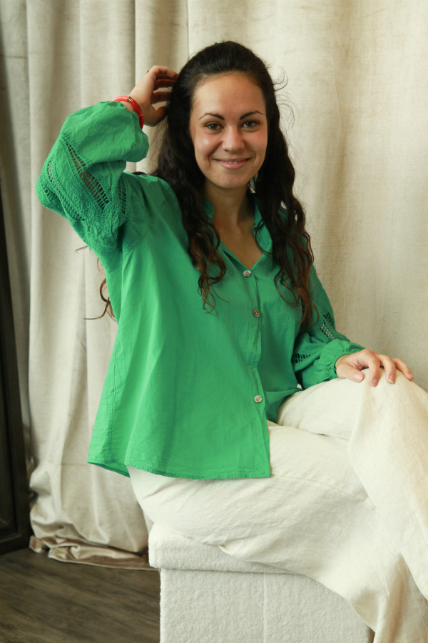 Apportez une touche de romantisme et d'élégance à votre garde-robe avec notre chemise à manches bouffantes ajourées. Conçue pour celles qui aiment allier sophistication et modernité, cette chemise se distingue par ses détails raffinés et sa silhouette féminine.