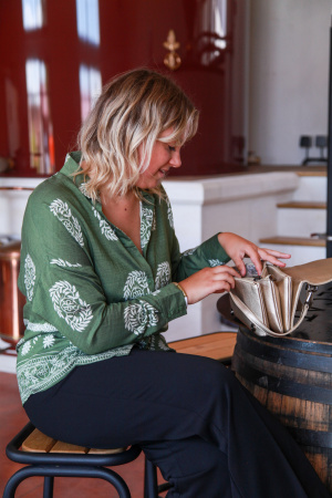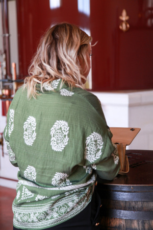 Cette chemise à motif couronne de blé est une pièce unique et élégante qui apporte une touche de nature et de raffinement à votre garde-robe.