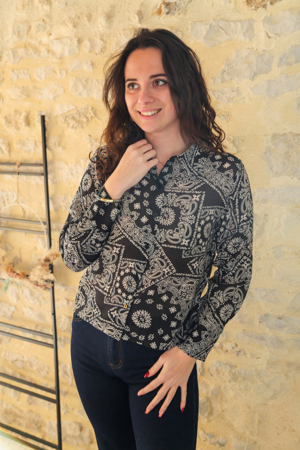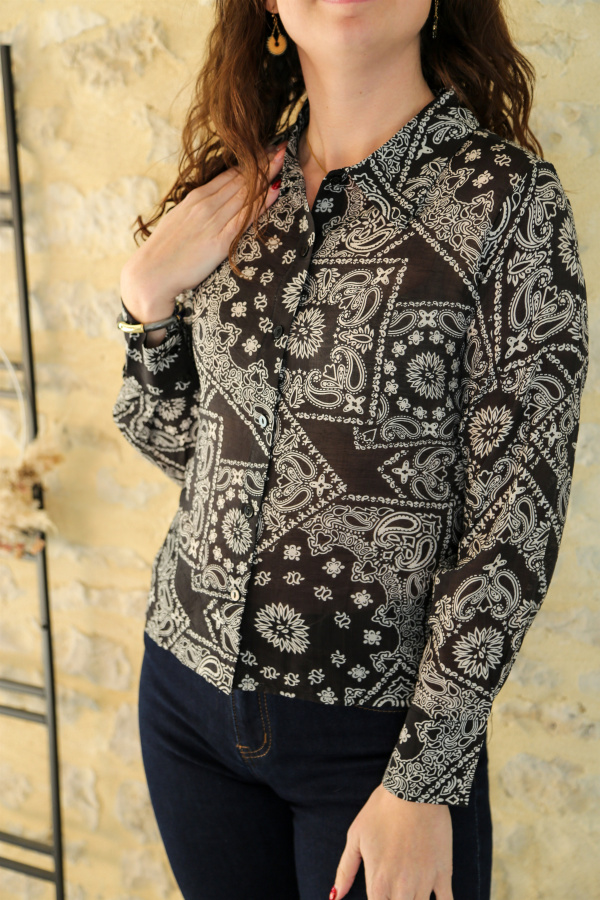 Adoptez un style casual-chic avec cette chemise légère à manches longues, ornée d’un motif bandana tendance. Parfaite pour apporter une touche d’originalité à vos tenues, elle allie confort et élégance en toutes saisons.
