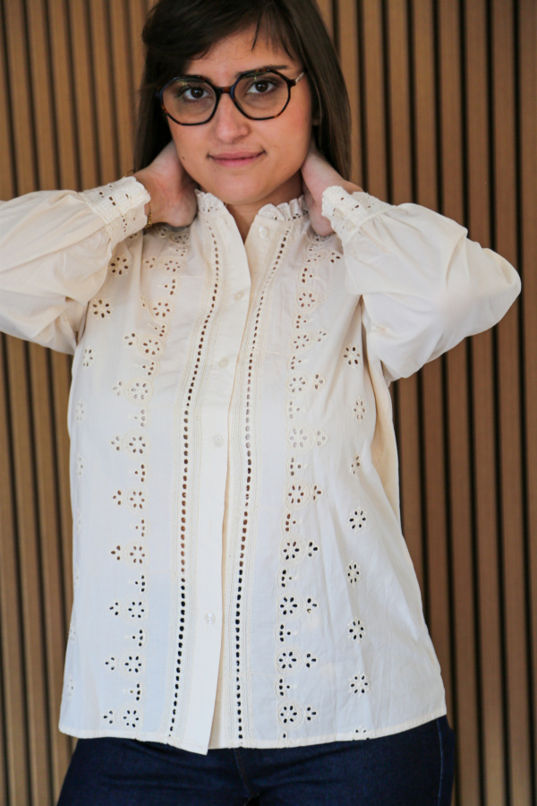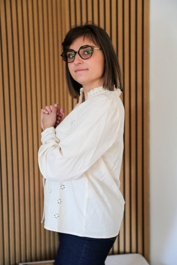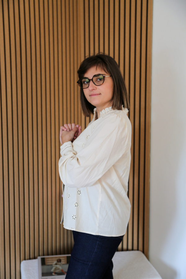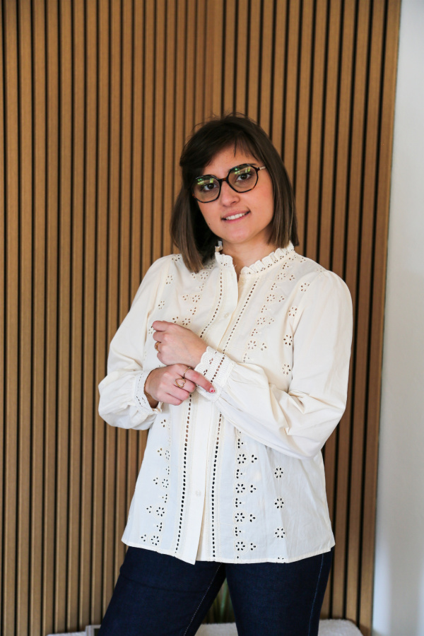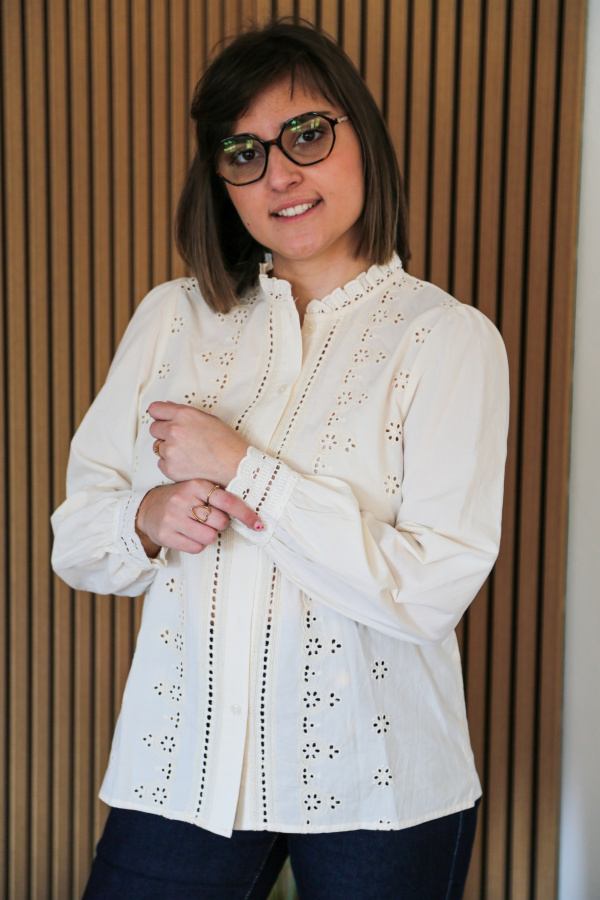 Ce chemisier au col rond est une pièce délicate et féminine, idéale pour ajouter une touche de fraîcheur à votre garde-robe. La broderie de petites fleurs, finement réalisée sur le devant, apporte une dimension subtilement romantique et printanière à l'ensemble. Le tissu léger et fluide assure un confort optimal, tandis que la coupe classique et élégante permet de l'associer facilement à une variété de styles. Parfait pour une tenue de jour ou de soirée, ce chemisier se porte aussi bien avec un jean décontracté qu'avec une jupe plus habillée, offrant une allure douce et raffinée.