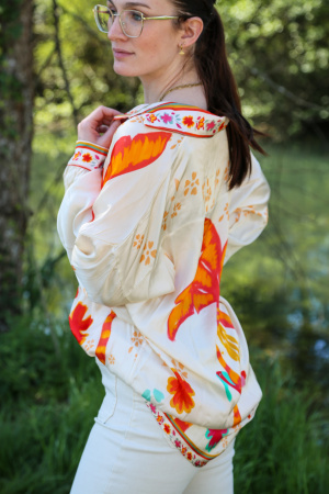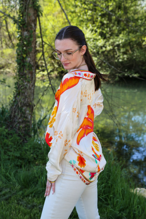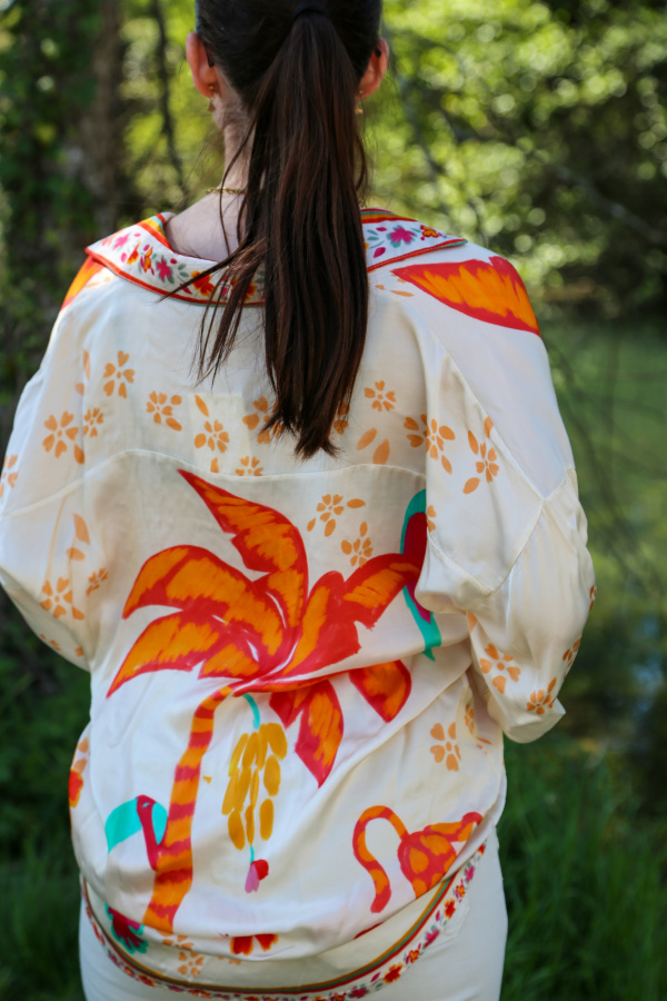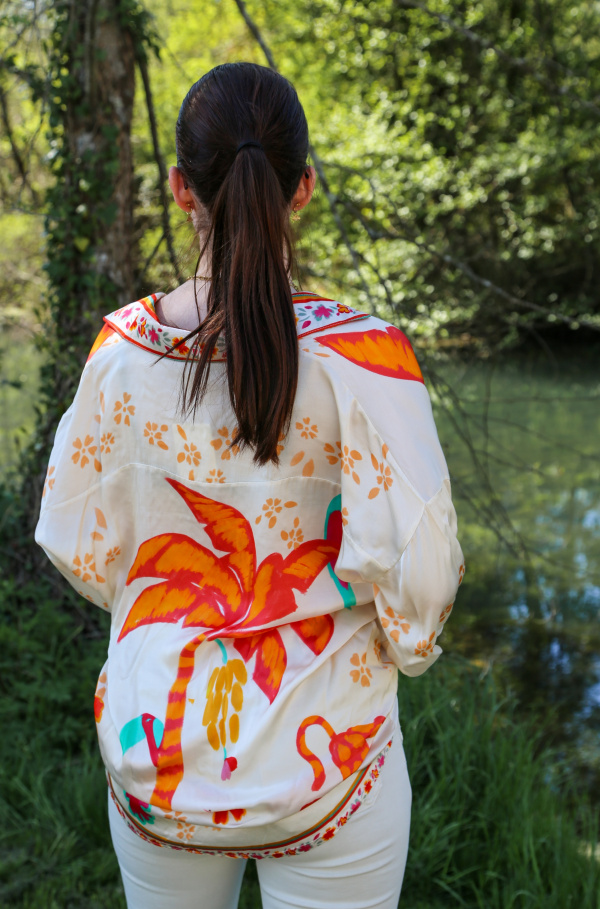 Optez pour une élégance légère avec cette chemise en viscose et soie, qui allie douceur et fluidité. Son motif palmier exotique évoque le soleil et les vacances, apportant une touche de fraîcheur et de style à vos tenues. Fabriquée avec soin en Italie, cette chemise reflète un savoir-faire unique et une attention aux détails.