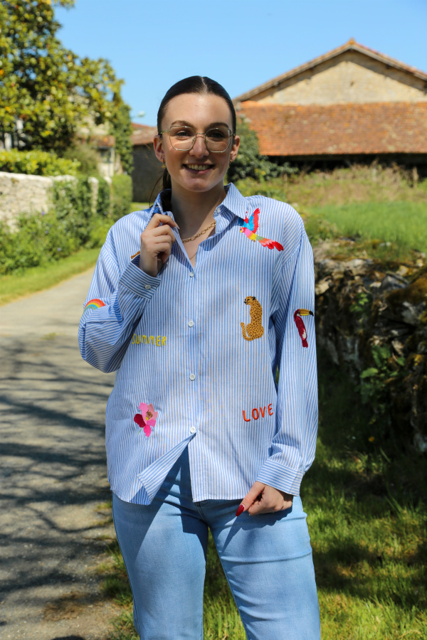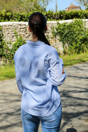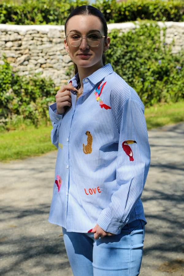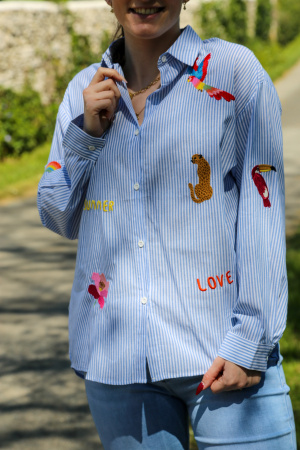 Osez l'aventure avec cette chemise à rayures fines, sublimée par un motif unique d'animaux de la jungle. Élégante et audacieuse, elle combine le charme classique des rayures avec une touche sauvage, idéale pour celles qui aiment ajouter du caractère à leurs tenues.