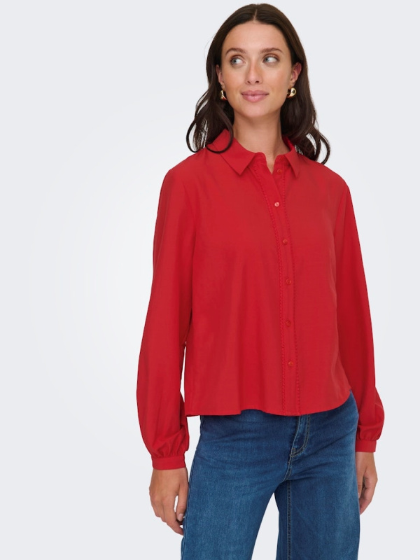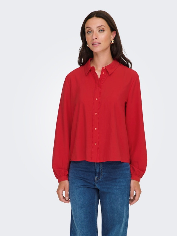 Cette chemise à la coupe Regular Fit revisite un classique du vestiaire avec une touche de féminité audacieuse. Son col chemise intemporel et sa fermeture boutonnée s’allient à des manches longues et volumineuses, pour un look à la fois structuré et tendance.