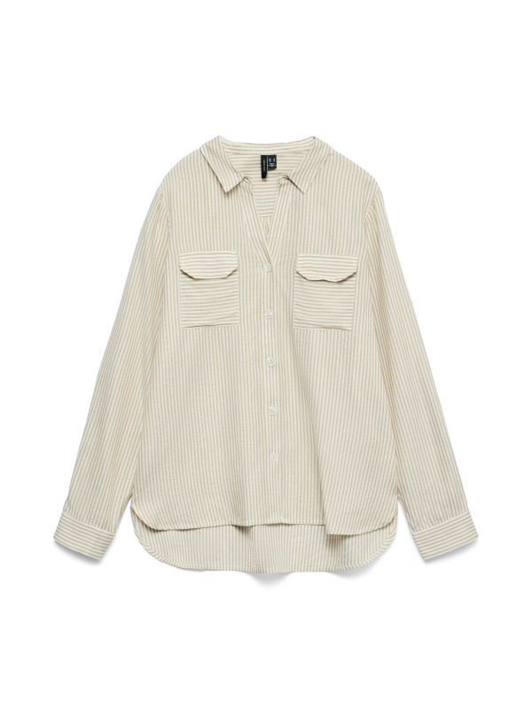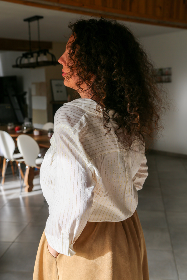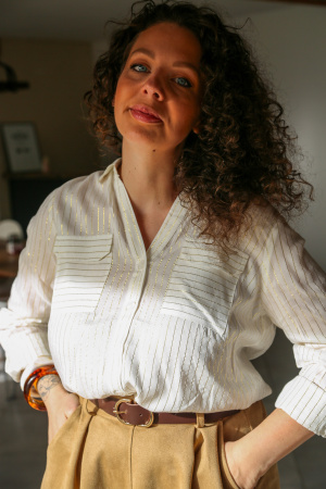 Cette chemise apporte une touche d’éclat subtil à votre tenue grâce à son motif de rayures fines dorées, délicatement travaillées pour un rendu lumineux et raffiné. Les poches plates à l’avant ajoutent une note contemporaine et structurée, tout en préservant la légèreté de la silhouette.