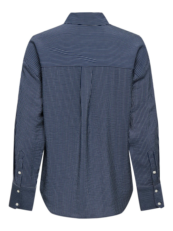 Son coloris, rehaussé de fines rayures verticales blanches, apporte une touche intemporelle et facile à associer. La coupe droite garantit une bonne liberté de mouvement, tandis que le col classique et la fermeture boutonnée sur le devant renforcent son style polyvalent.