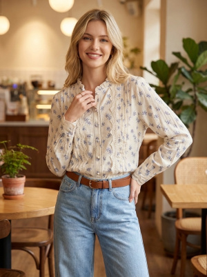 Facile à associer, cette blouse s’intègre naturellement dans un vestiaire moderne, apportant une note romantique et soignée à chaque look.