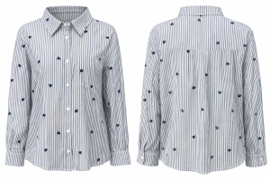 Chemise rayée à broderies cœur – Coton léger
